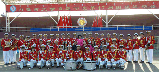 擔(dān)任運(yùn)動會開閉幕式現(xiàn)場演奏任務(wù)的學(xué)院軍樂團(tuán) | |