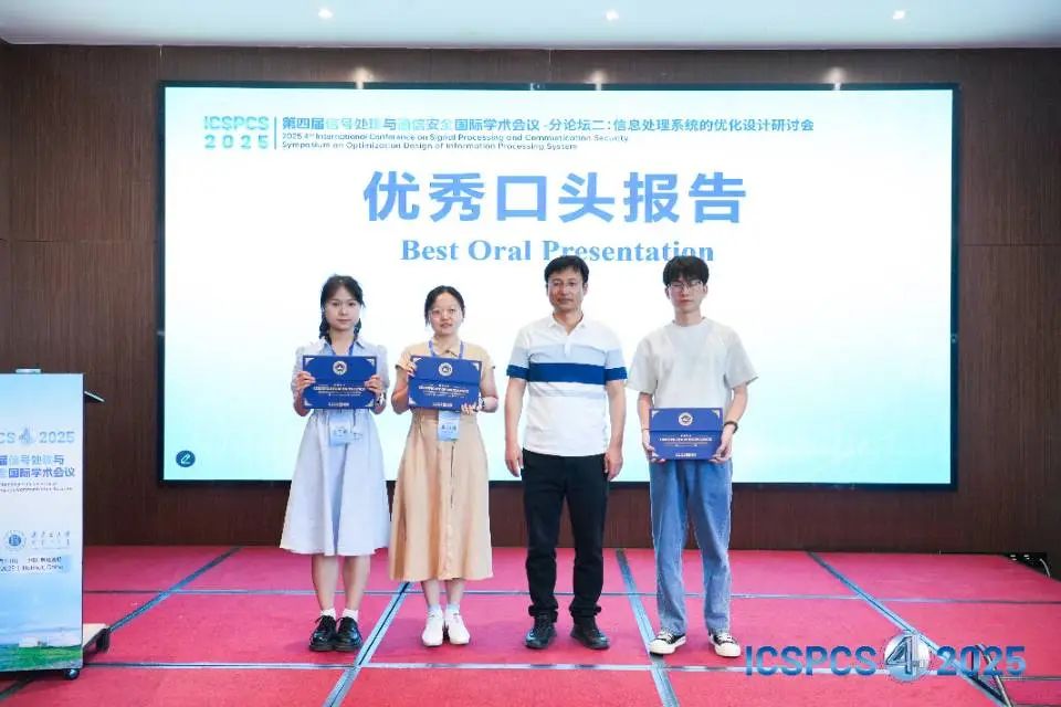 組委會對現(xiàn)場口頭報告表現(xiàn)優(yōu)異的學(xué)者頒發(fā)【優(yōu)秀口頭報告獎】,通過表彰優(yōu)秀的科研人才與科研成果,希望能夠激勵更多學(xué)者在領(lǐng)域前沿不斷探索。至此,第四屆信號處理與通信安全國際學(xué)術(shù)會議(ICSPCS 2025)在專家學(xué)者熱烈討論的氛圍下圓滿落幕!